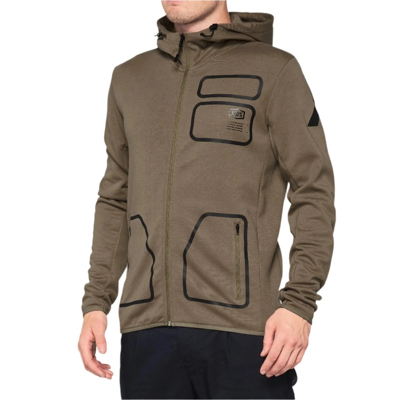 The 100% Viceroy Tech Zip Hoodie in Brindle is crafted from an 85% Polyester / 15% Cotton 290gsm mid-weight interlock fleece, providing a comfortable yet technical feel with excellent moisture-wicking properties. The custom athletic cut ensures a modern fit that allows for a full range of motion without being restrictive. The extended neck zip offers added versatility and ventilation. Lycra edge binding provides a clean and secure finish. Reflective heat transfer branding enhances visibility in low-light conditions. Secure zippered pockets offer peace of mind for storing your valuables. The custom trim package adds a touch of premium detail to this tech fleece hoodie. At Moto Central, while we stock the distinctive Brindle colour, we want to highlight that 100% offers the Viceroy Tech Zip Hoodie in a variety of colours and sizes to suit individual preferences. As a key partner of 100%, we can readily order any colour or size you desire directly to our store for you, ensuring you find the perfect Viceroy Tech Zip Hoodie to match your needs.