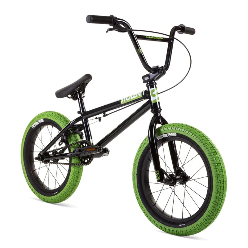 “TheStolen Agent 16″is a great starter bike for any young child getting into riding. Also one of the neat features is a rear cassette wheel to be less confusing for your young one to stop. The bike comes in black and redcolor way. The frame geometry is a downward top tube for easy mounting and dismounting and low profile frame keeps your child closer to the ground for less risk of injuries. Here at Stacked bmx Shop we recommend full protection gear and adult supervision at all times.