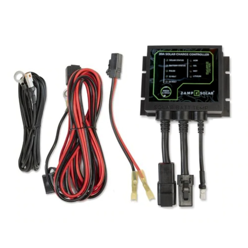 The Zamp SolarPT20 Solar Charge Controller automatically controls solar charging powerto protect AGM, Gel, Wet, and Lithium batteries.The ultra-rugged"all-weather" unit comes with a temperature sensor (2.9m), a pre-terminated weather-resistant ATP batteryc