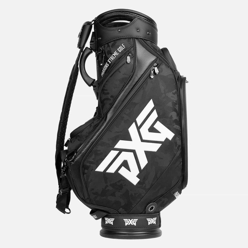 Feel like a pro on every round with our Jacquard Woven Fairway Camo Tour Bag. Equally durable and versatile, this sharp bag features a six-way reinforced top, molded base, 11 total pockets, customizable belly panel, and plenty of PXG style. The intricately