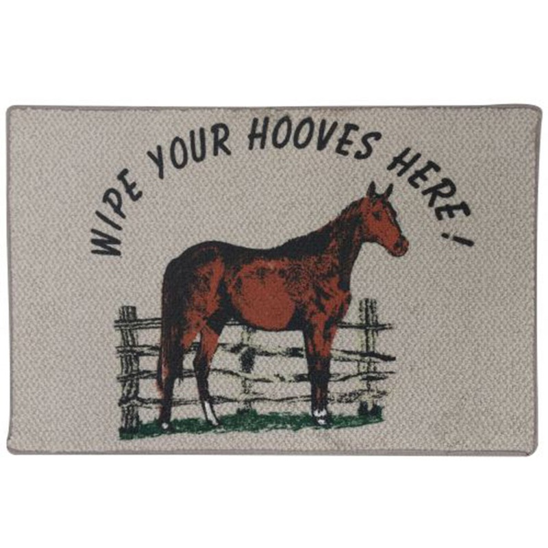 27 x 18 Wipe your hooves here! Welcomemat. Thiswelcome mat features screen printed standing horse design. * Carpet styles will vary within earth tones*var TabbedPanels1=new Spry.Widget.TabbedPanels(TabbedPanels1);
