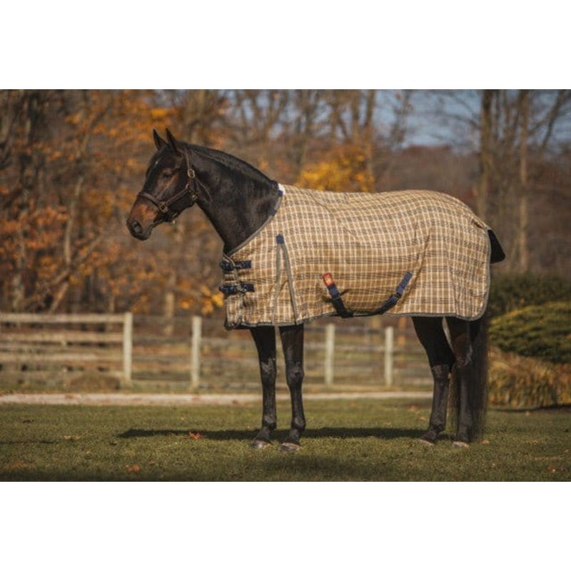 The 5/A Baker Extreme Turnout Blanket is made for the extreme cold and features 555 grams of polyfill making it one of the warmest turnout blankets available. Durable with 2100 denier polyester rip stop outershell, while still polishing the coat with a satin smooth inner lining. Waterproof and breathable allows your horse to stay dry and comfortable in the extreme cold weather. Baker Extreme Turnout blanket has the signature Baker plaid and red tag. Featuring shoulder gussets for freedom of movement, belly surcingles to help keep blanket in place, elastic hind leg straps and a tail flap.