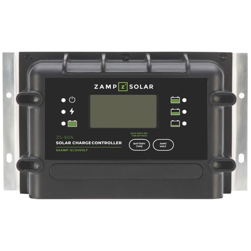 The Zamp Solar 60-amp charge controller can regulate up to 1,020watts and is compatible with lithium, gel, AGM, Conventional lead-acid (wet), and calcium batteries.