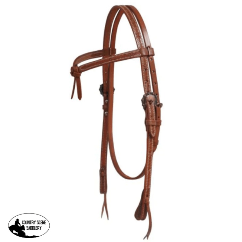 Argentina cow leatherfuturityheadstallbarbed wire tooling.features double stitched Argentina cow leather with a tooled barbed wire designengraved copper hardware.Brass BucklesInstock Subject to change.