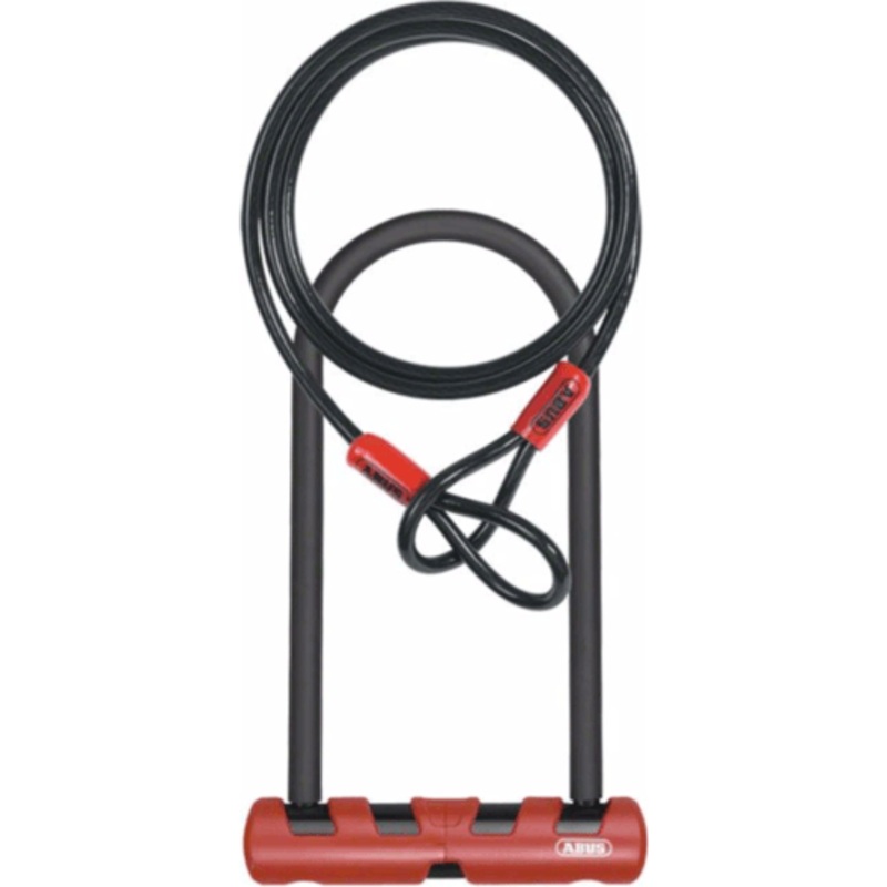 Technology Features industry leading corrosion resistance. 14mm round shackle Lightweight with excellent strength to weight ratio Double bolting shackle in the lock body Shackle, lock body and supporting elements made of special temper hardened steel ABUS Premium Cylinder offers great protection against picking Two keys supplied with the lock Soft-touch cover protects frame *U-Lock comes with additional 10mm /4.6′ Cobra cable