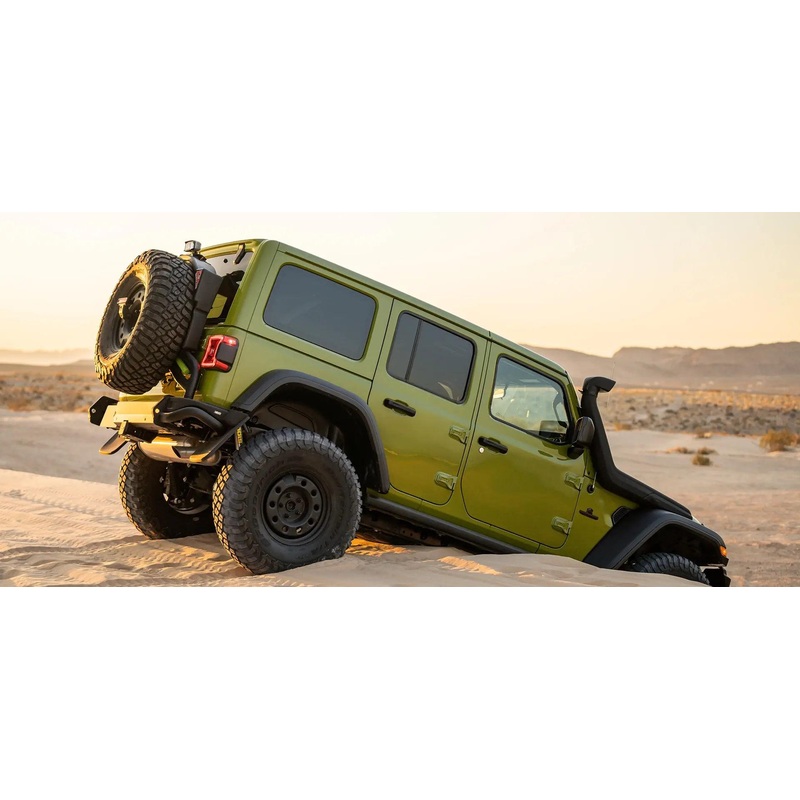 The AEV Rear Bumper and RX Tire Carrier for the 2018+ JL Wrangler are essential upgrades for anyone serious about off-roading adventure. The OE Jeep JL Wrangler rear bumper with tire carrier work perfectly fine for a stock vehicle that seldom leaves the road, but they are not really meant to withstand much off-road abuse.