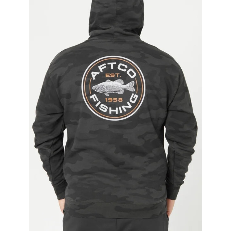 The Aftco Kingpin Camo Pullover Hoodie is a casual hoodie that works great for walking around town or as a layering piece during those brisk days on the water. Offering a midweight fleece construction, the Kingpin Camo Pullover Hoodie features stylish screen printed bass logo on the front and the back. Available in old school camo colorways, the Kingpin Camo Pullover Hoodie delivers the perfect blend of style and function.