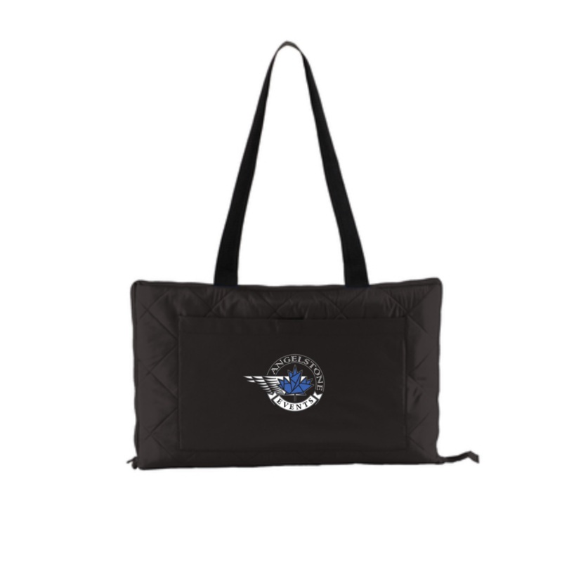 Designed for outdoor events, this packable blanket can be used as a comfortable seating pad or unzipped and laid out as a picnic blanket.