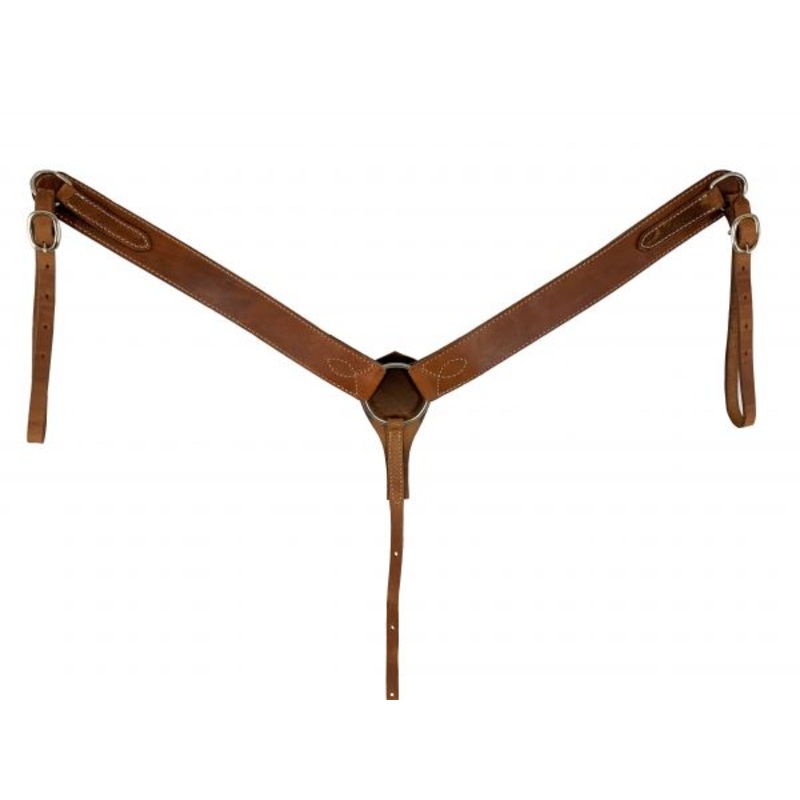 Showman Argentina CowLeather breast collar. This Breast collar is double stitched and features leather tugs on each side. Measures approximately 2" Wide.*Please note each computer monitor will display colors differently.Proposition 65 Warning for Californi