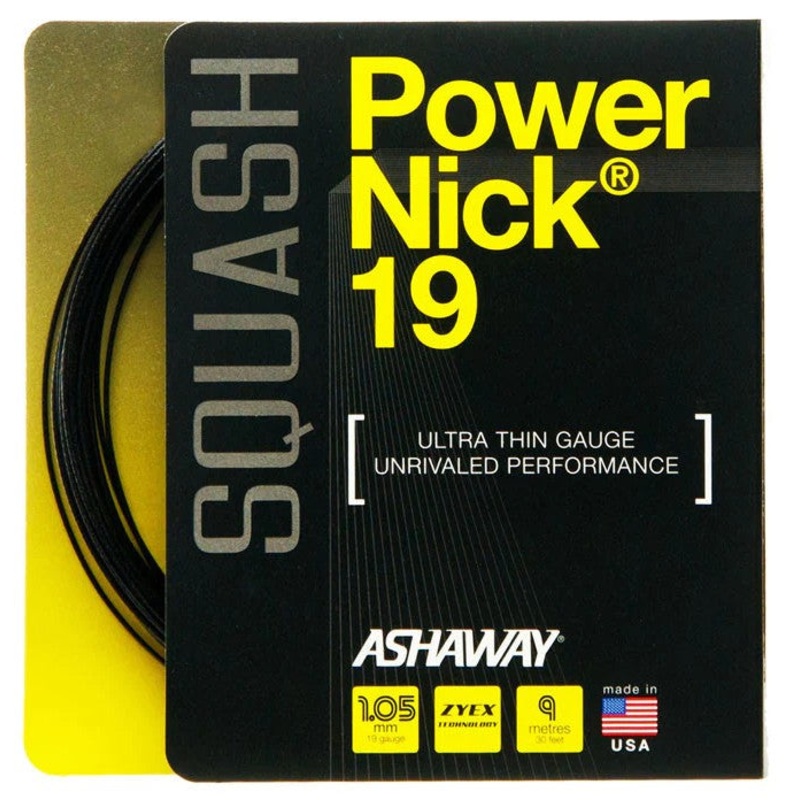 New 1.05 mm String Utilizes A Specially Formulated ZyexMonofilament CoreDramatically Increases Ability To Grip, Cut, Slice, And Work The BallAshaway, RI - Ashaway Racket Strings has introduced PowerNick 19, the thinnest string ever to grace a squash racque