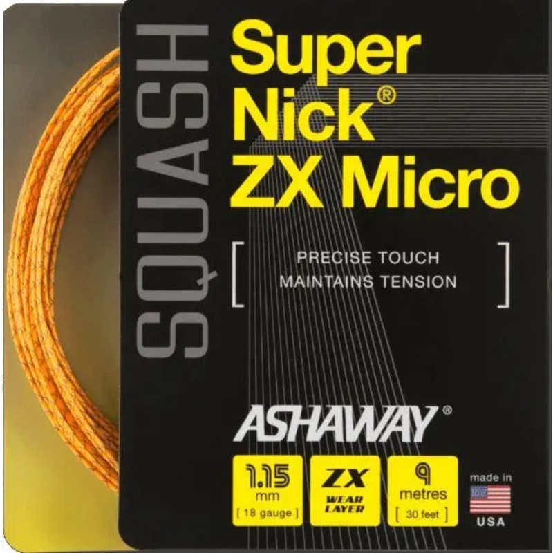 SuperNick ZX squash strings feature a multifilament nylon core encapsulated with a hi-tech ZX wear layer of Zyex filaments.Ships in OEM packaging and may miss paper insert.SuperNick ZX Micro is 1.15 mm in diameter with a multifilament nylon core for optimu