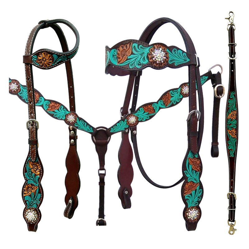 Tack Set: Our tack sets are made from high-quality leather, ensuring longevity and a supple feel. Each piece is adorned with intricate tooling and detailing, reflecting the artistry of our skilled craftsmen. The attention to detail sets this set apart, mak