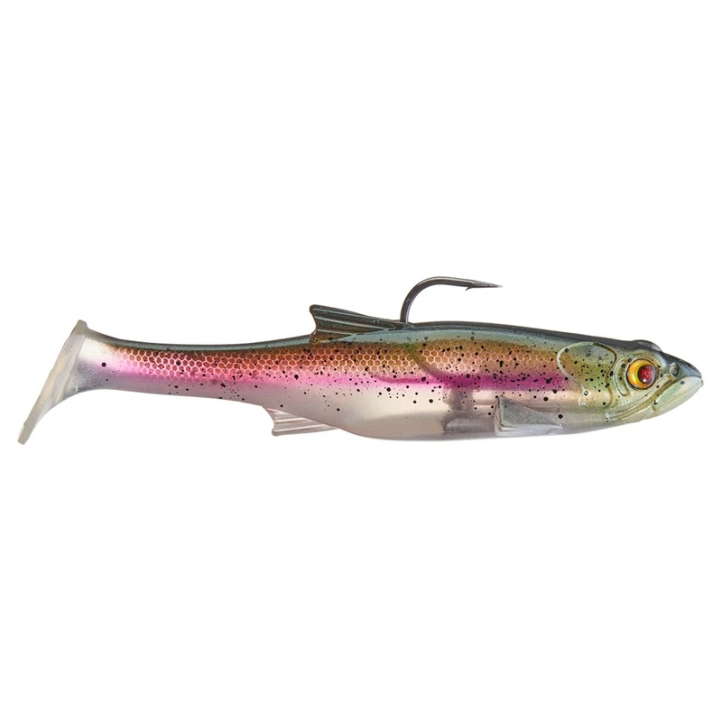 The Loaded Daingerous Swimbait revolutionizes the soft-bodied swimbait market with its innovative line-thru top-hook design, which is made possible by a patented hook-harness. The Daingerous Swimbaits Loaded configuration features a magnetized hook retaine