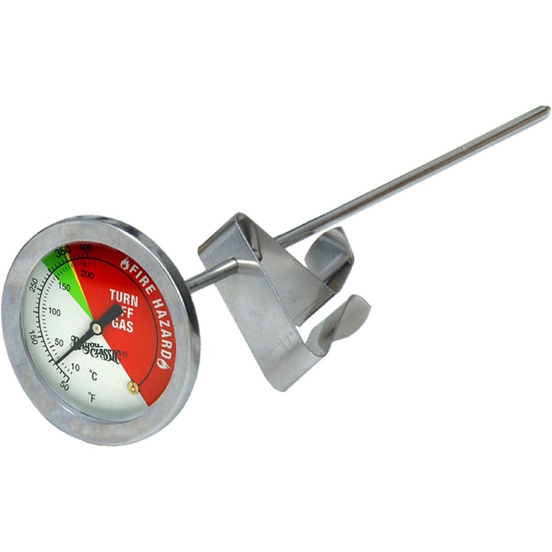 Features:Stainless constructionStem clip attaches to the side of turkey fryerTempered Glass Dial Face50F - 400F