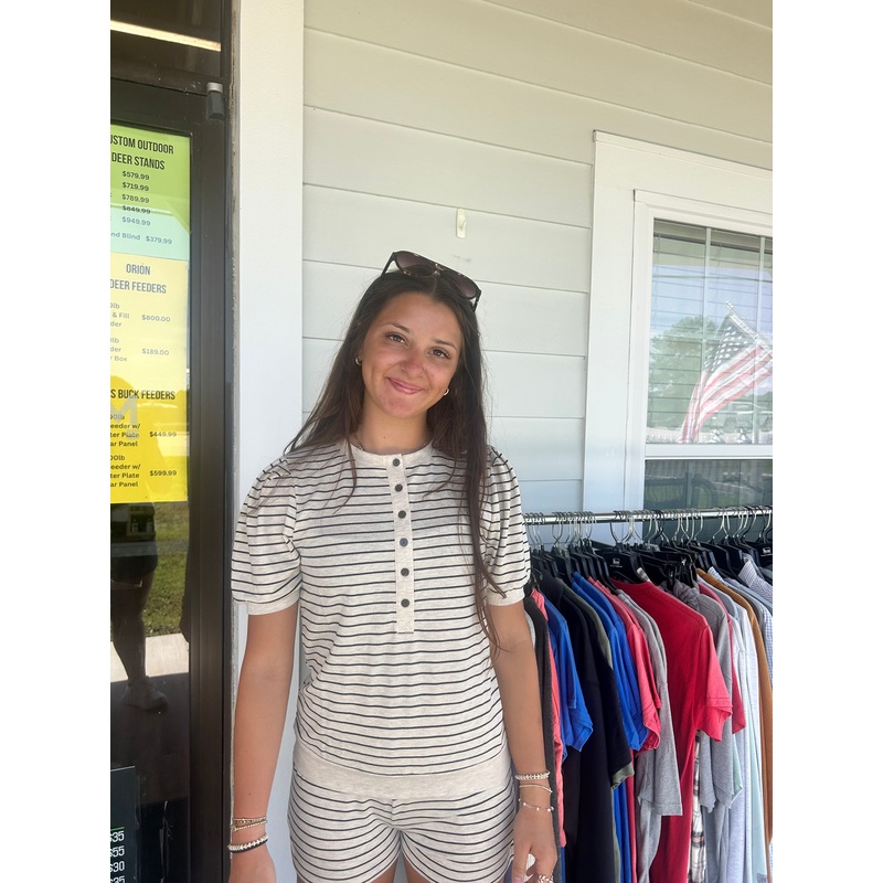 W29224611746Beige/Striped 2 Piece Set (Short Sleeved/Shorts)