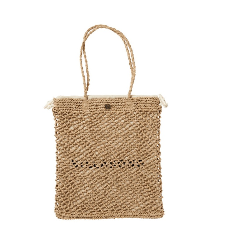 Upgrade your beach game with the ultimate boho chic vibes of the Billabong Two Cute Beach Tote in tan. Made with a perfect blend of paper straw and cotton, this tote features a spacious body with a removable drawstring pouch, natural wood toggles, and an i