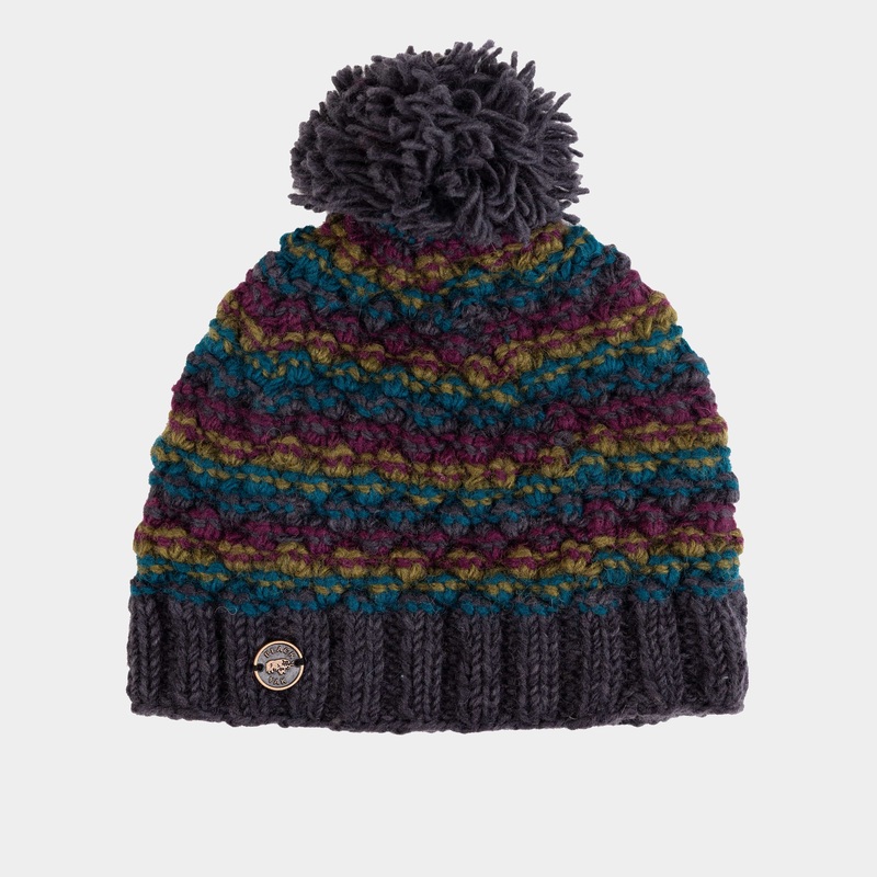 From the tops of mountains to nestled in your sleeping bag, its amazing how much warmer you feel with a woolly hat pulled down over your ears.Made using 100% sheeps wool in a striped knit, the Blackberry Stitch bobble hat is half-lined with microfleece for