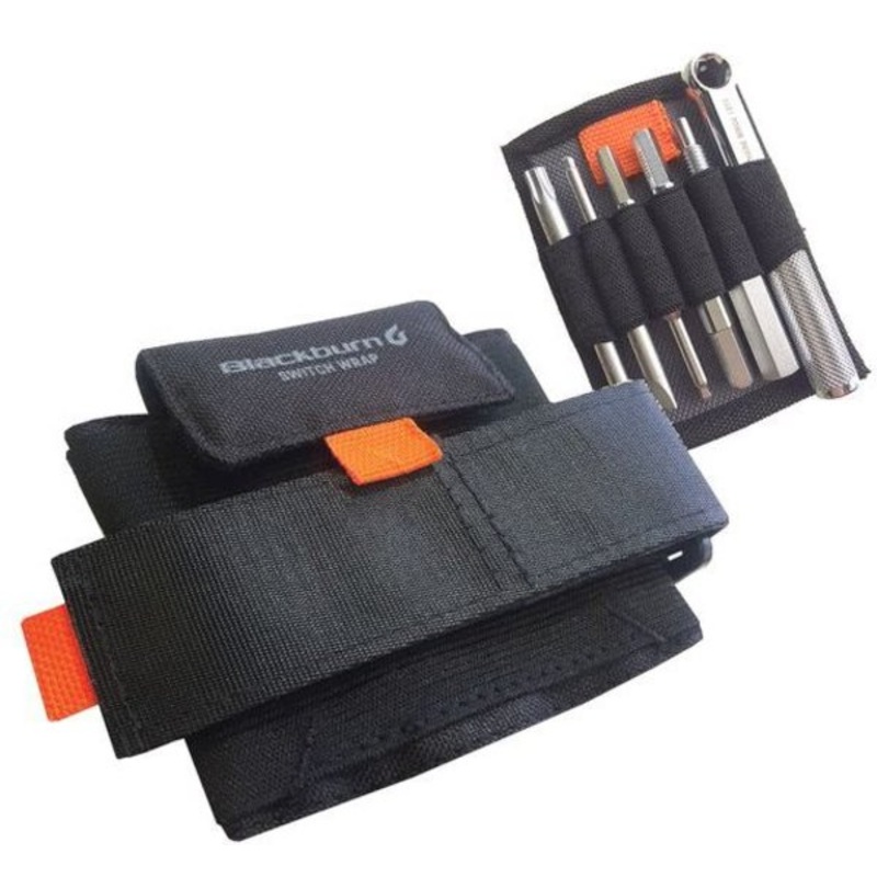 Imagine if you could bring a tool box with all the essentials youd need for bicycle maintenance with you on every ride. Well then, stop dreaming: the Blackburn Switch Wrap is already here. Specd with their Big Switch multi tool, the Switch Wrap provides you quick access to everything youll need to fix just about anything that could go wrong on a ride. The Wrap features specific sleeves for an inner tube, up to a 20g CO2 cartridge, and a tire lever. And, it keeps the Big Switch tools at your fingertips. When opened, the tool kit hangs from your saddle so you can grab what you need without spreading it all on the ground, so lost tools will only exist in nightmares.