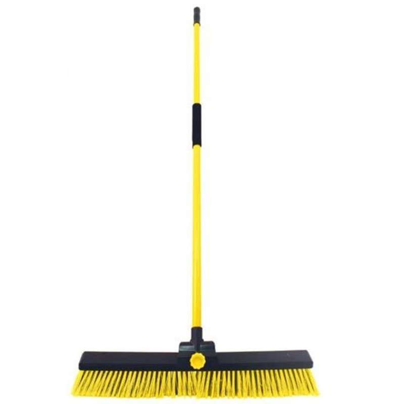 Combined stiff and soft PVC bristles ideal for sweeping up heavy rubble in wet and dry conditions. The soft bristles limit the release of dust particles. Fitted with a strong durable metal handle and heavy duty bracket. Neoprene cushion-grip for comfort. Reverse handle position maintains even wear of broom.