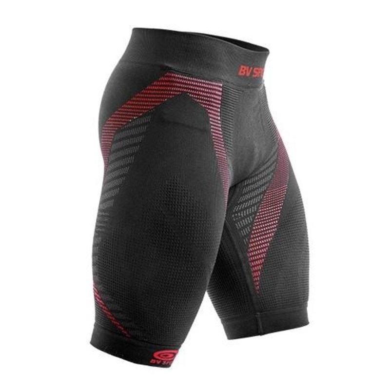 After the physical activity, the pelvis and thighs muscles are submitted to important venous and bio-mechanical constraints that may increase with the sports practice. The original structure of R-Tech compression short, specifically adapted to the sports practice, is made of different nets. The compression short is composed of tear proof seams and different support levels throughout the thigh and butts muscles.