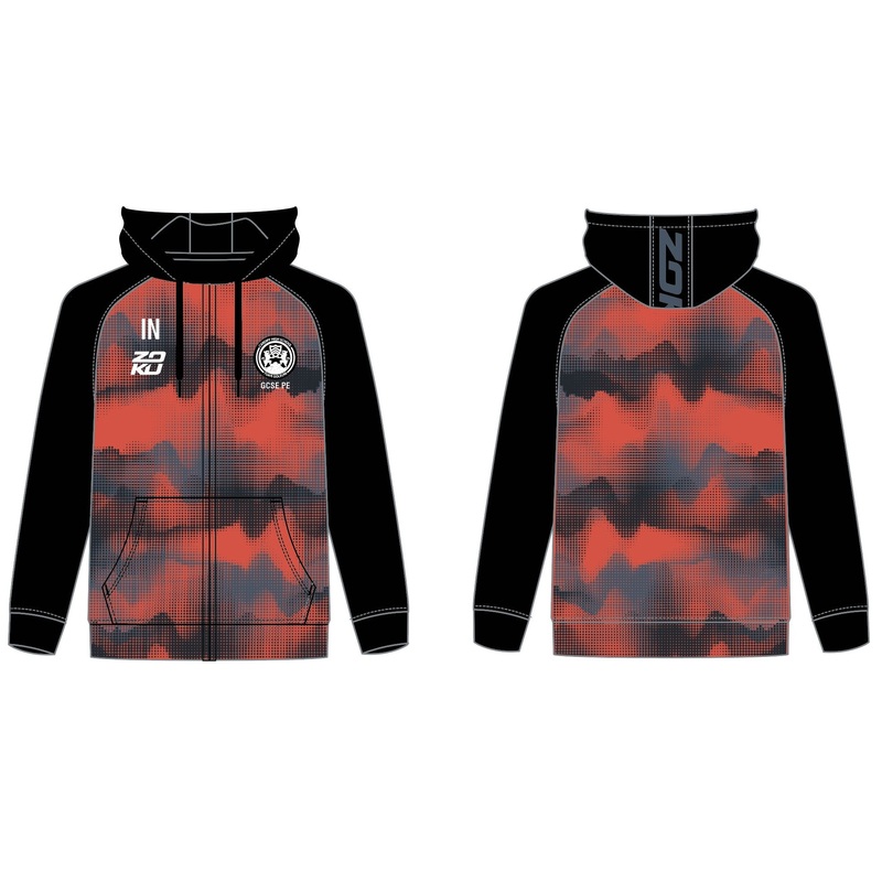 Cardiff High School GCSE PE Hoodie 2024 RED/BLACK PATTERNSizes available from: JL-XXLPlease allow up to 6-8weeksfor delivery from the window deadline as each item is made to order,and please concern that all made to order and customised item can not be ret