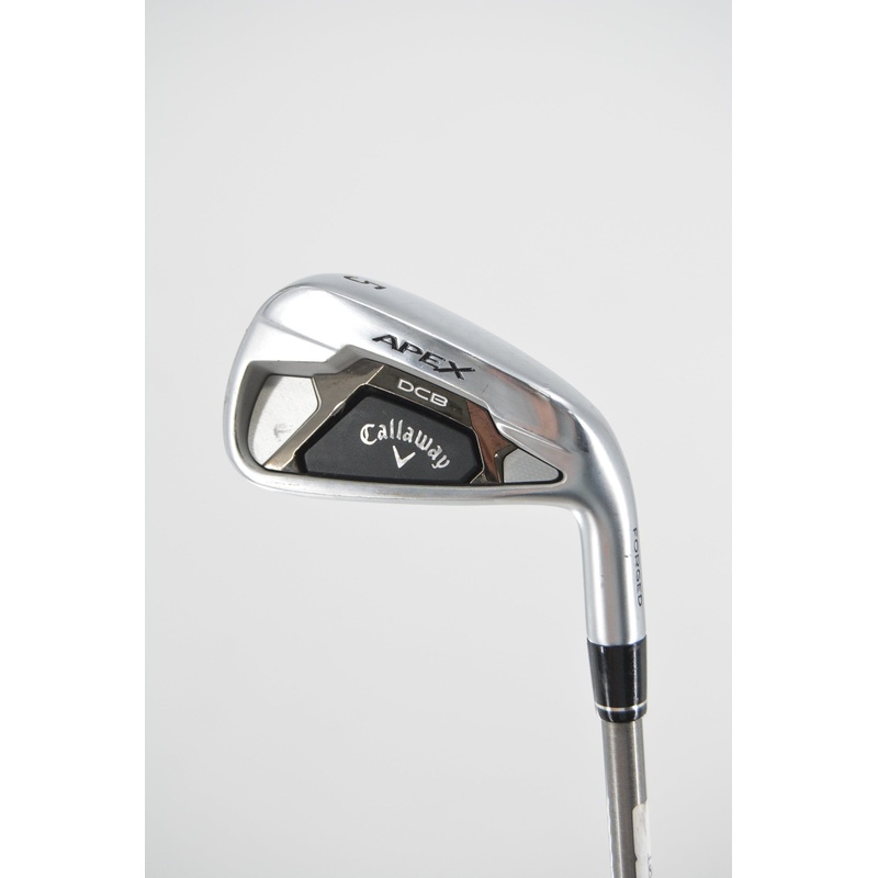 Hand/Gender: Right-Handed/Men'sStyle: Control & DistanceBrand: CallawayModel: Apex DCBClub Type: IronClub Number: 5Flex: Stiff FlexLength: 37.75"Shaft: Aerotech Steelfiber 90g (Graphite)Grip: Winn Dri-Tac (Midsize)Condition: Iron is in great condition (lig
