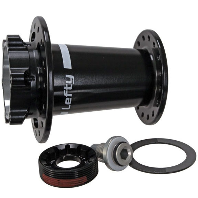 Alloy shell front hub for Lefty Includes axle cap and bolt International Standard 6-bolt disc rotor mount. 110g TECH SPECSfront/rearfrontaxle/spacing (mm)Leftyhole32hcolorblack