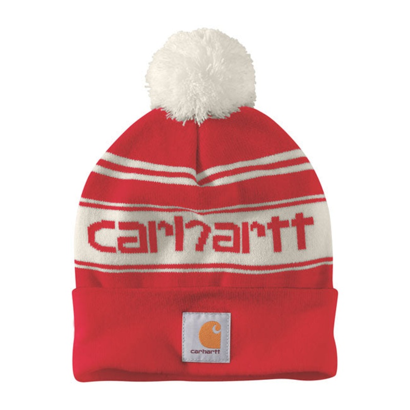 Carhartt Pom-Pom Logo Beanie – Red Winter White Description