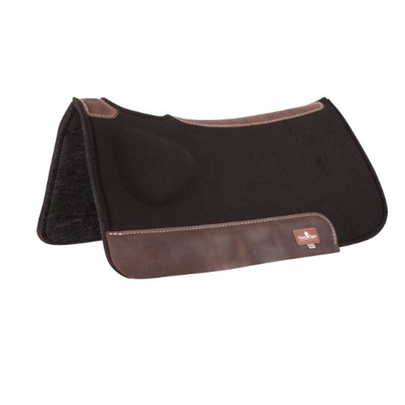 Supports the front of the saddle from collapsing in the area behind the shoulder as a result of muscle loss, ill saddle fit, or conformation. Strategic wedge placement fills in the void area, offering extra support. Works well for very high withers or older horses with a diminishing topline. 7/8″ quality wool blend offers superior shock absorption and protection. Contoured design molds to conform to your horses back for added comfort and improved saddle fit. Cut out over withers for greater gullet clearance and spine relief.