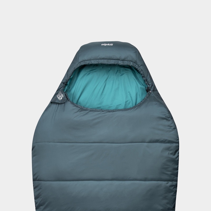 A slightly tapered mummy shape uses less energy to warm up and the full length zip baffle reduces heat loss. The hood and neck baffles can also be cinched right down to keep you snug and draught-free.