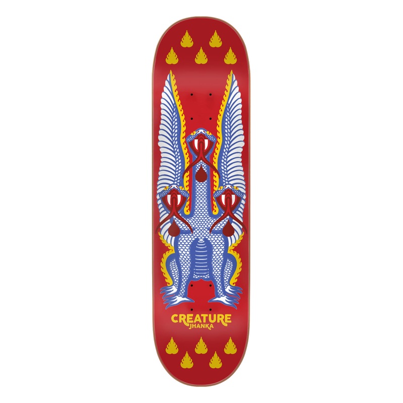 Creature Jhanka Snakes 8.6" Skateboard DeckHeed warning approaching these 2 symbolic beasts. Choose of Venom and Fire on Jhanka's Snake or ride upon Wings and Blood of Bkkel's Demon. Regardless of your choosing, both beasts will summon conquest to your nex