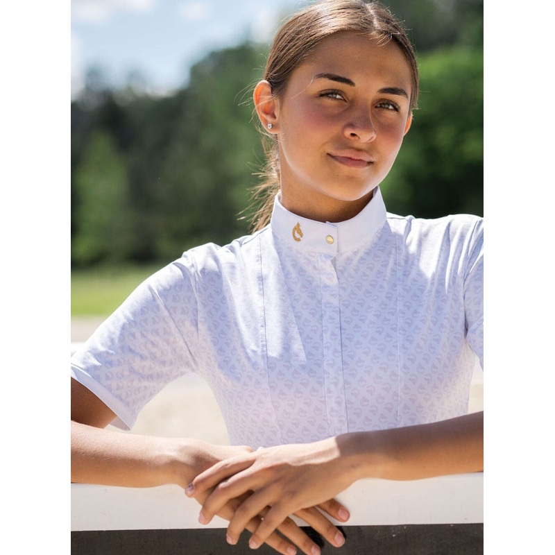 Make a statement in the show ring with the Helen Show Shirt Print.This competition top features a stylish slim-fit design and a beautiful, eye-catching print for a look that’s both sophisticated and fun. The soft print adds a touch of personality without compromising on elegance. Long sleeves ensure optimal comfort throughout your ride, while the easy zip closure with one snap at the neck offers added coverage.