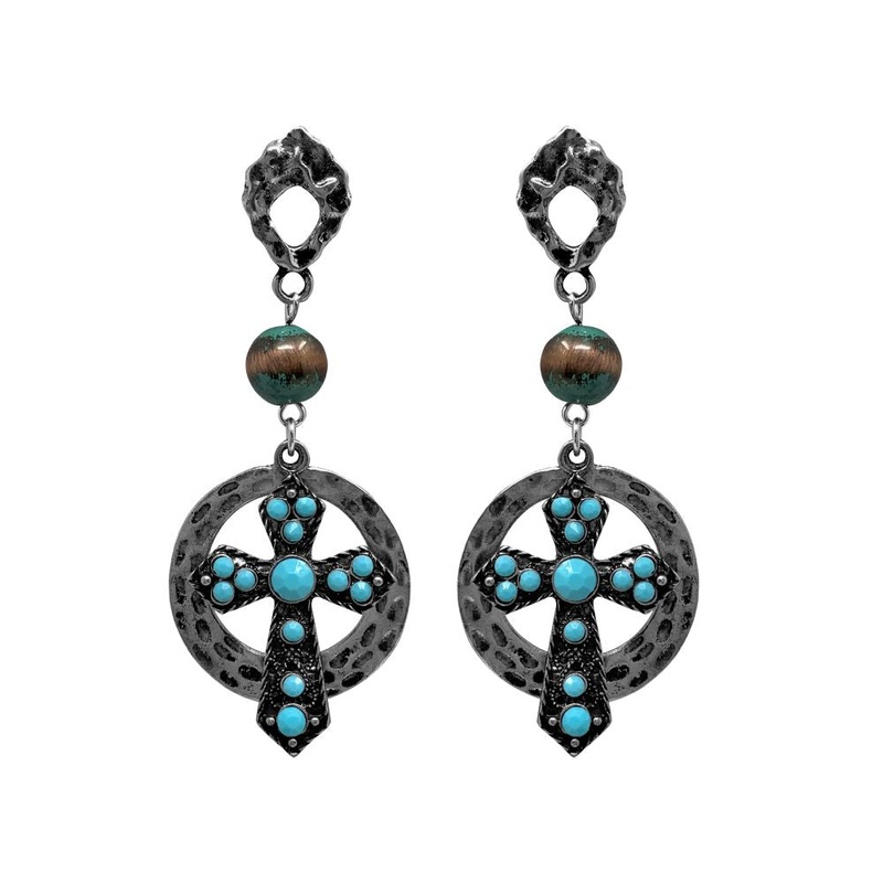 Cross Dangle earrings with stud back and turquoise stone accentsLead and Nickel CompliantCLEARANCEThis is a CloseoutDiscontinued item. Sizes, colors and quantities are limited.No refundsNo exchanges on CloseoutDiscontinued items. Products are sold as is.var TabbedPanels1=new Spry.Widget.TabbedPanels(TabbedPanels1);