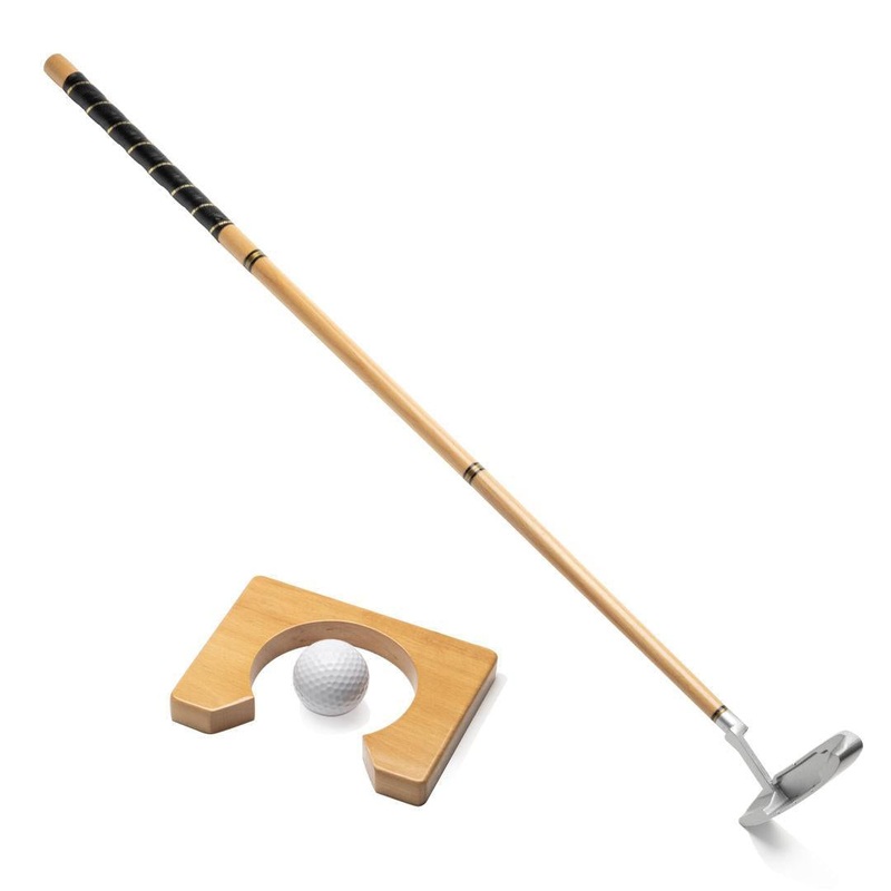 Elevate your golf game on the go with our Links Putter Set, complete with a sleek leatherette case for effortless portability. Each set includes a putter, a wooden goal rack, and a perfectly weighted golf ball for precision putting wherever you roam. Custo