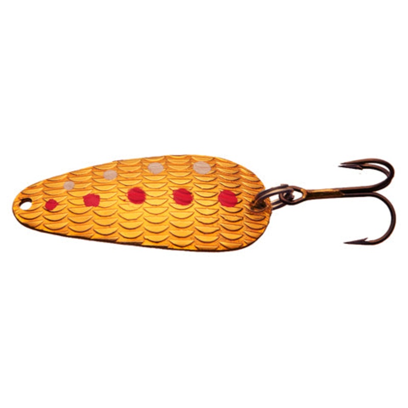 The Thomas Cyclone has been an angler favorite in the world-famous trout waters of the American west for 50 years. It is extremely effective for trout, and many other types of game fish, in any freshwater. This wobbler-type spoon is made of solid brass with a highly reflective embossed surface. Jewelry-quality plated and durable painted finishes, combined with this embossed surface, creates an irresistible flash. Made in the U.S.A.