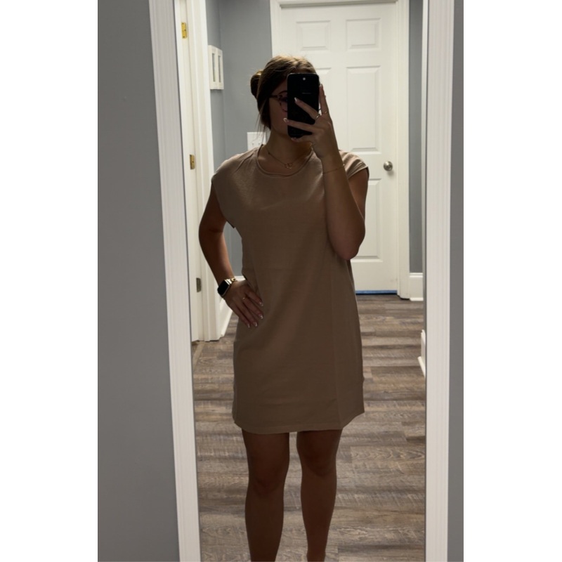 W29224611736Dark Taupe Cuffed Short Sleeve Cotton Dress