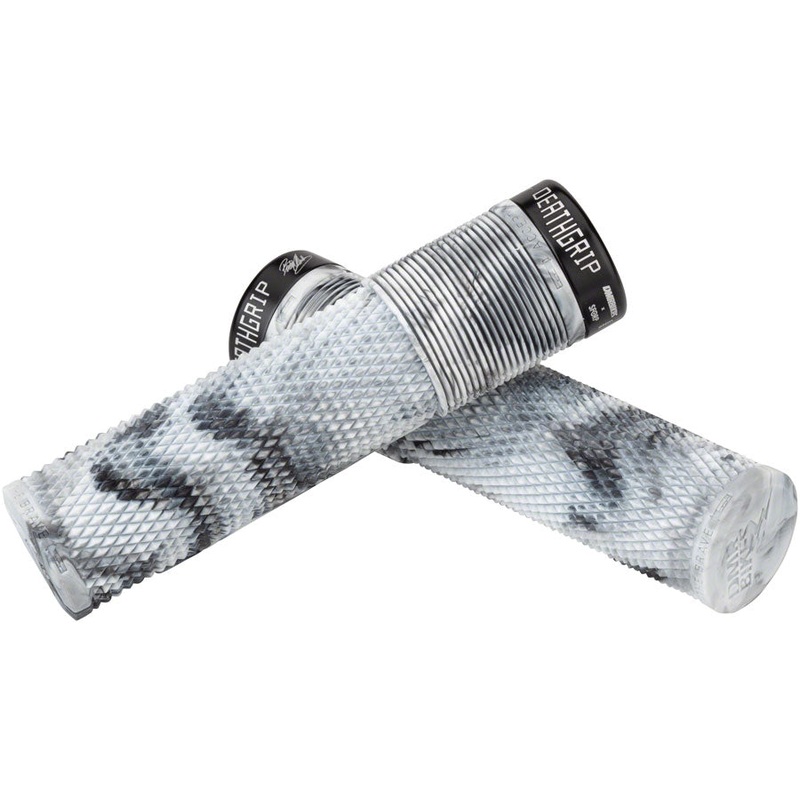DMR DeathGrip Flangeless Grips – Thick Lock-On Snow Camo. The DeathGrip Flangeless is the second collaboration between DMR and Brendog. DMR started with an internally tapered single-lock core grip and wrapped Brendans design around it in super-soft Kraton compound.