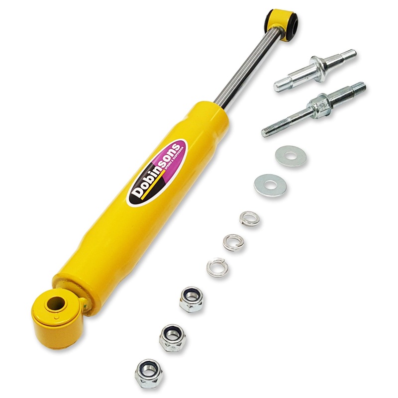 Dobinsons Spring and Suspensions range of 4wd steering dampers are the perfect addition steering damperto your Dobinsons suspension kit. Featuring a larger body size for smoother cooler operation and 50/50 valving Dobinsons heavy duty steering dampers ensure comfortable controlled steering operation, especially on vehicles fitted with raised suspension, additional accessories or larger tires. Dobinsons heavy duty steering dampers feature a massive 18mm chromed rod, 32mm bore and 50mm body with steel stone guard. End mountings are kept the same as the original vehicle mountings to ensure quick hassle free fitment.