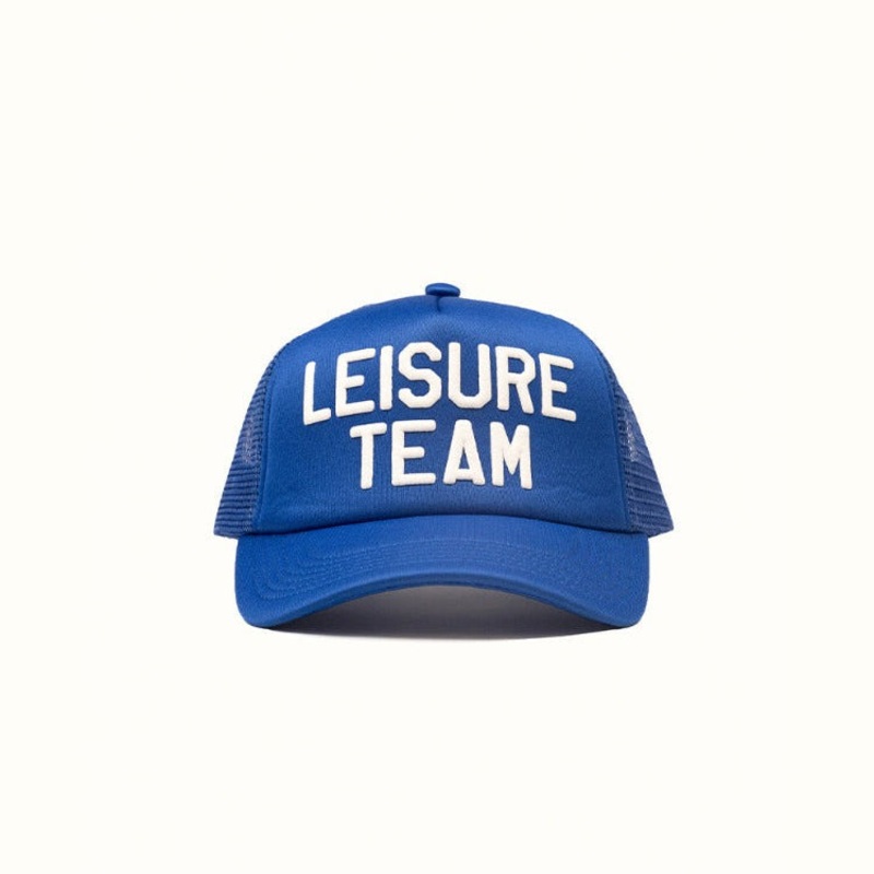 Leisure Team Foam Trucker HatFoam front, trucker mesh sidesPuff print "Leisure Team"