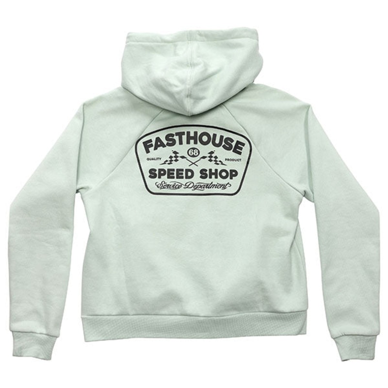 Fasthouse - Wedged Hooded Pullover (Womens)The womens Wedged hooded pullover is a super soft, cotton-poly blend fleece with raglan sleeves. Features custom graphics on front and back, this cozy piece is perfect for those chilly mornings out at the track.80