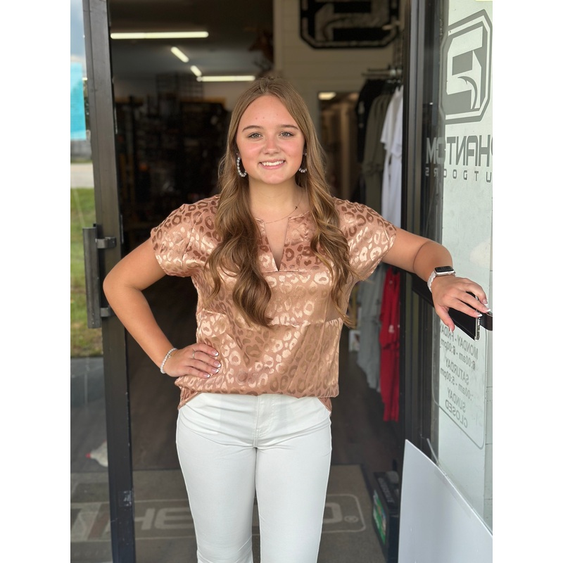 W29224614497Gold Leopard Print Notched Neck Blouse