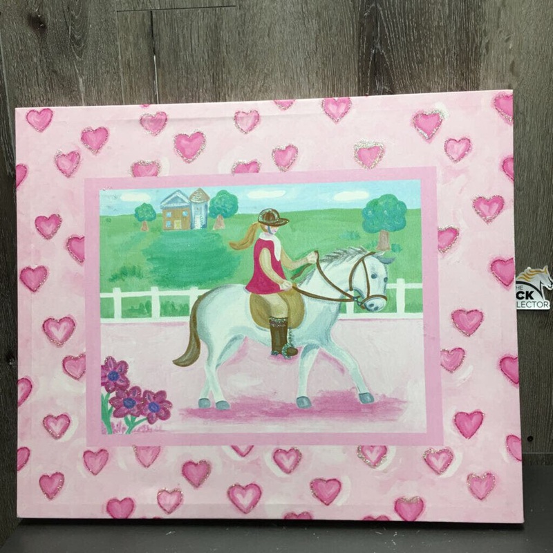 QOVE262827760"Grey Pony & Rider" Wood Frame Custom Canvas Painting *xc, mnr stains & scratches 20" x 24" Pink/Multi Used