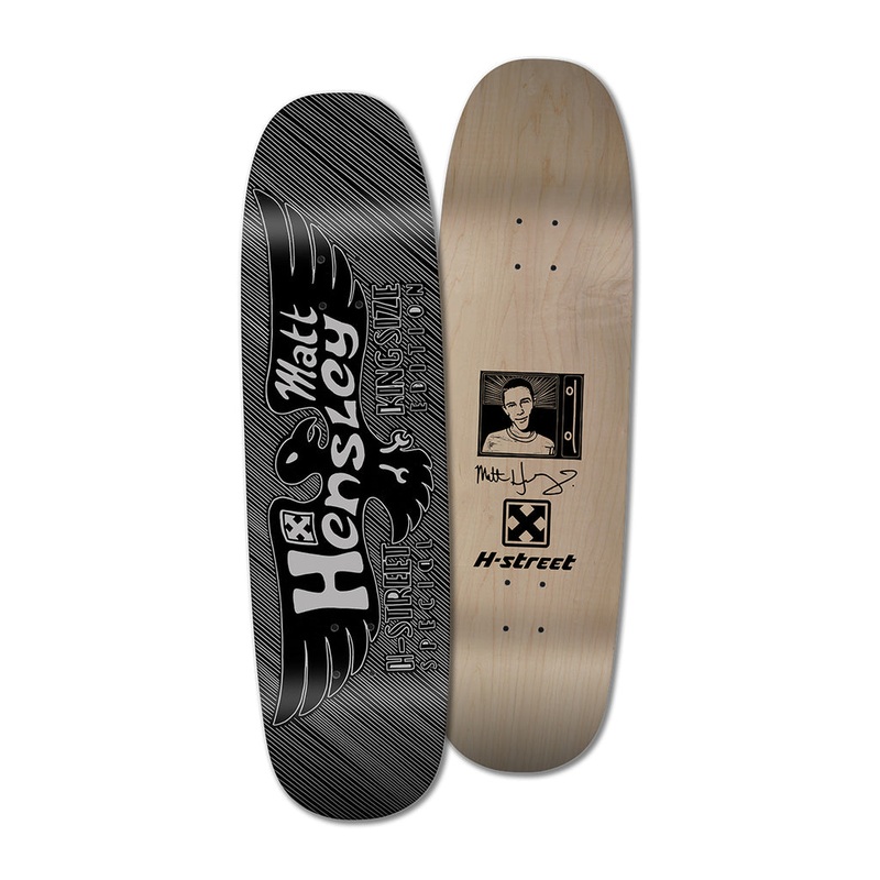 H-Street Matt Hensley Kingsize Eagle Blockprint LTD Skateboard DeckWe are finally re-introducing the Matt Hensley Special Edition Eagle Block Print. Matt made this version of the all-time classic graphic himself, using the ancient block print technique, wh