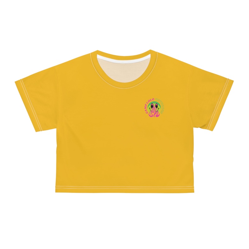 This groovy crop top has both comfort and style in spades. Add whimsical patterns, feel-good designs and create a unique AOP crop tee thats perfect for everyday wear. Made 100% with silky soft polyester that is both lightweight and breathable.