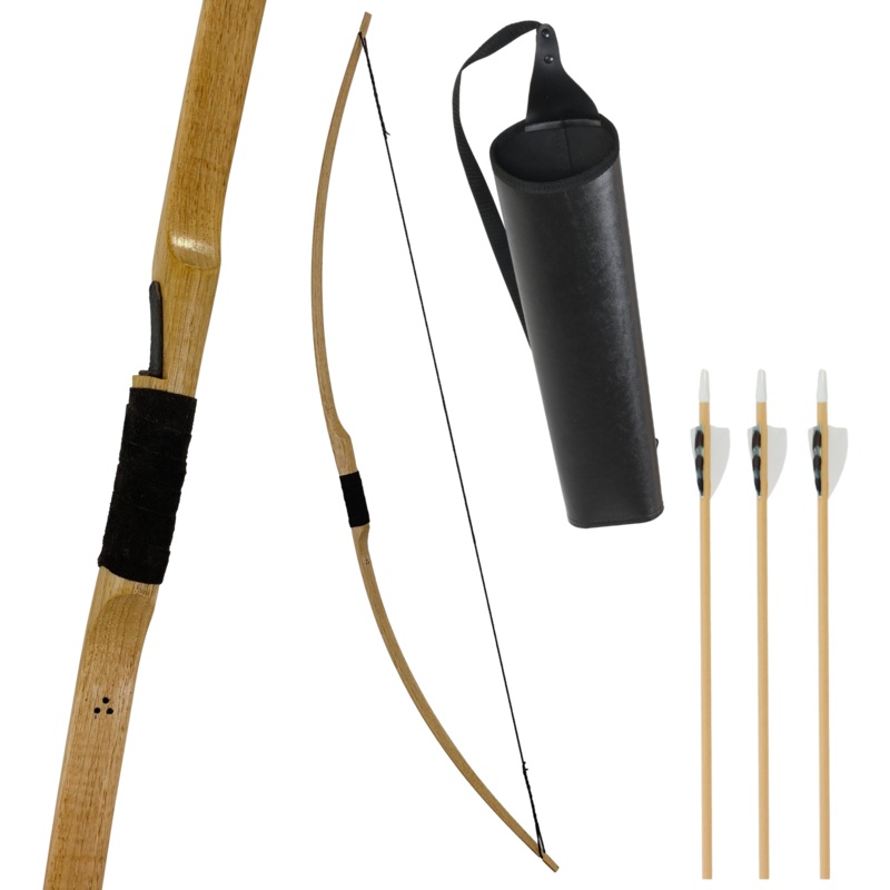 Finally, A handcrafted Youth Longbow with a limited draw weight for a beginning archer. It is a great bow for target shooting. The Heritage Youth Longbow is made from solid hickory, stained golden oak and has an arrow shelf for easy arrow placement. The handle is wrapped in a genuine leather cord.