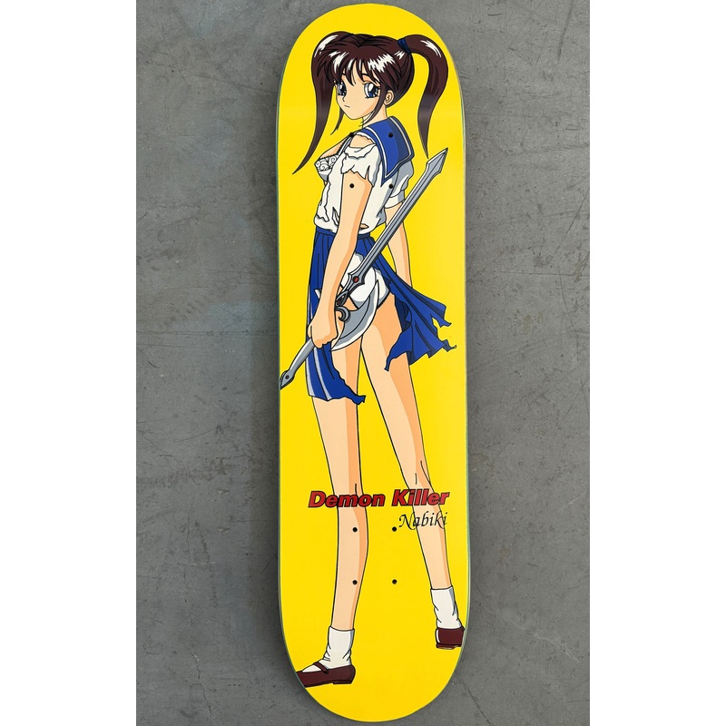 Demon Killer Nabiki 8.0 X 31.75 HAND SCREENED.This board is printed using the original films from 1996 by Chicken at Screaming Squeegees. top color veneer may vary. Each board is signed by me on the top. these boards are part of the Hook-ups 30th year anniversary.