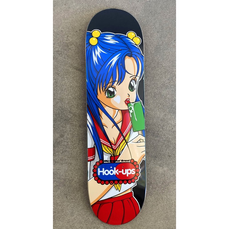 Hook Ups Ice Cream Girl Skateboard Deck*Hand Screened!Hook Ups - Ice Cream Girl - 8.25 X 32.25, top and bottom color veneer may vary. this board comes in random veneer colors. you can specify your color choice, but we can't promise you'll get that exact co