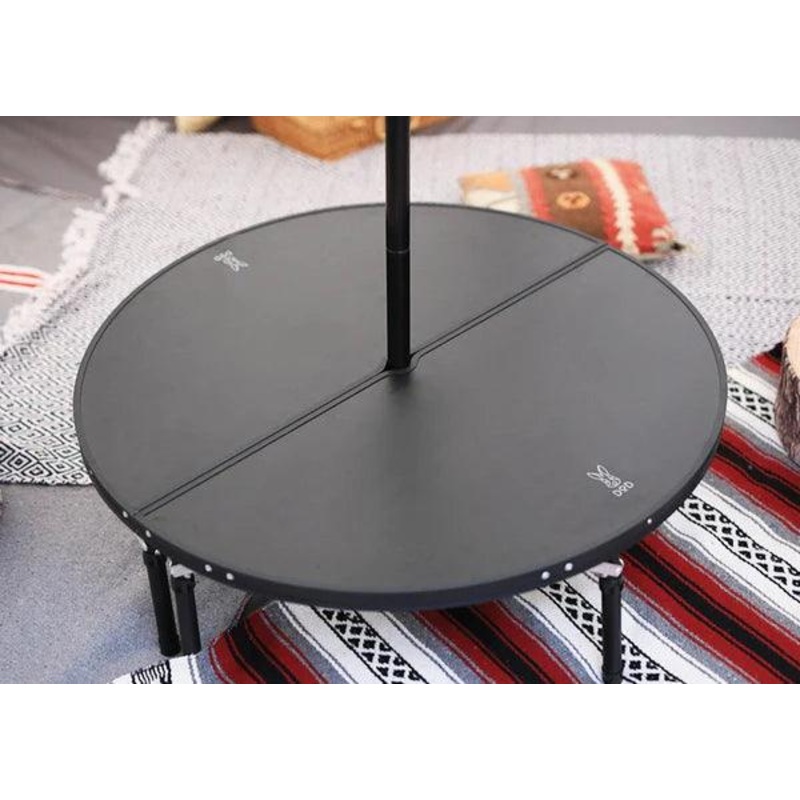 Turn our Ichi One Pole tipi into a dining room or game room with the Ichi One Pole table. The round table fits around the center pole. At 3ft (90cm) across, it offers plenty of space. The table is free-standing – the two halves link together with magnets – so its easy to move outside the tent when its time to sleep or when you need a table anywhere else in camp. You can even stack the two halves to create a shelf system in your camp kitchen.