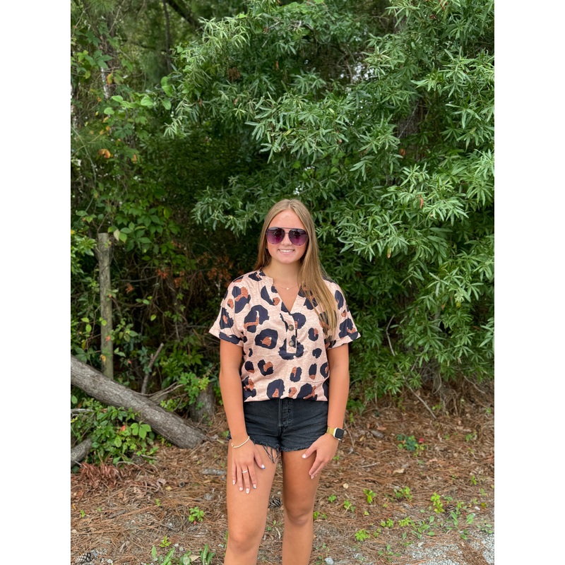 Composition:100% PolyesterMaterial:PolyesterLength:RegularBelt:NoChest Pad:No PaddingDetails:ButtonPattern:LeopardSheer:NoSeason:SummerOperation Instruction:Machine wash or professional dry cleanStyle:ElegantFabric Elasticity:Mid ElasticityPrinting Type:Random PrintingWeaving Method:Knit FabricCollar Style:V-neck