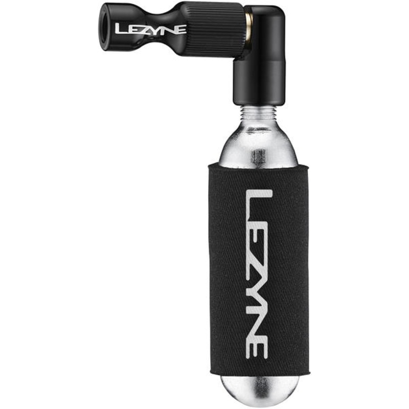 CNC machined aluminum dispenser with brass internals. Trigger Valve Operation for easy and controlled inflation. Twin Chuck head threads on to Presta and Schrader valves. Neoprene sleeve insulates hand from cold during discharge. Compatible with threaded CO2 cartridges. Includes one 16g cartridge.